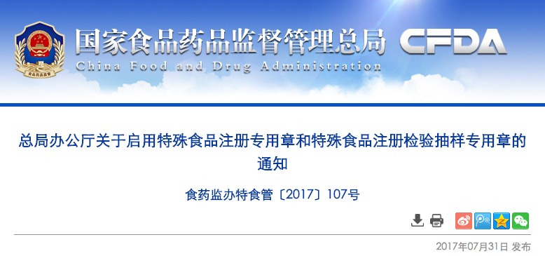 CFDA正式啟用特殊食品注冊(cè)專(zhuān)用章 原注冊(cè)專(zhuān)用章廢止